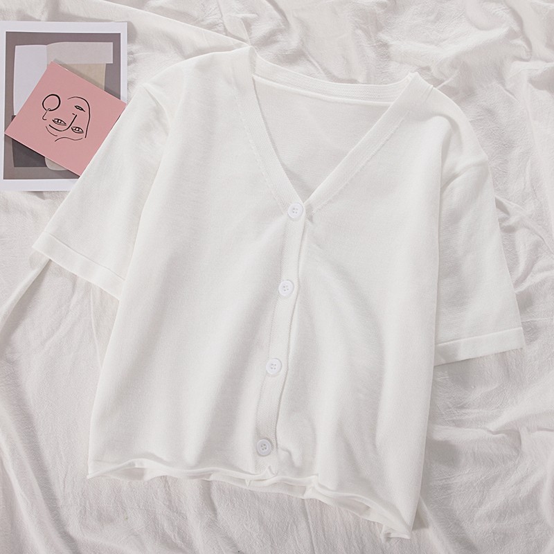 半小時前氣質v領薄款打底針織衫,2020夏季新款女裝短款開衫上衣 - 【買一送一】任選2件,僅需NT$998