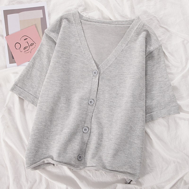 半小時前氣質v領薄款打底針織衫,2020夏季新款女裝短款開衫上衣 - 【買一送二】任選3件,僅需NT$1098