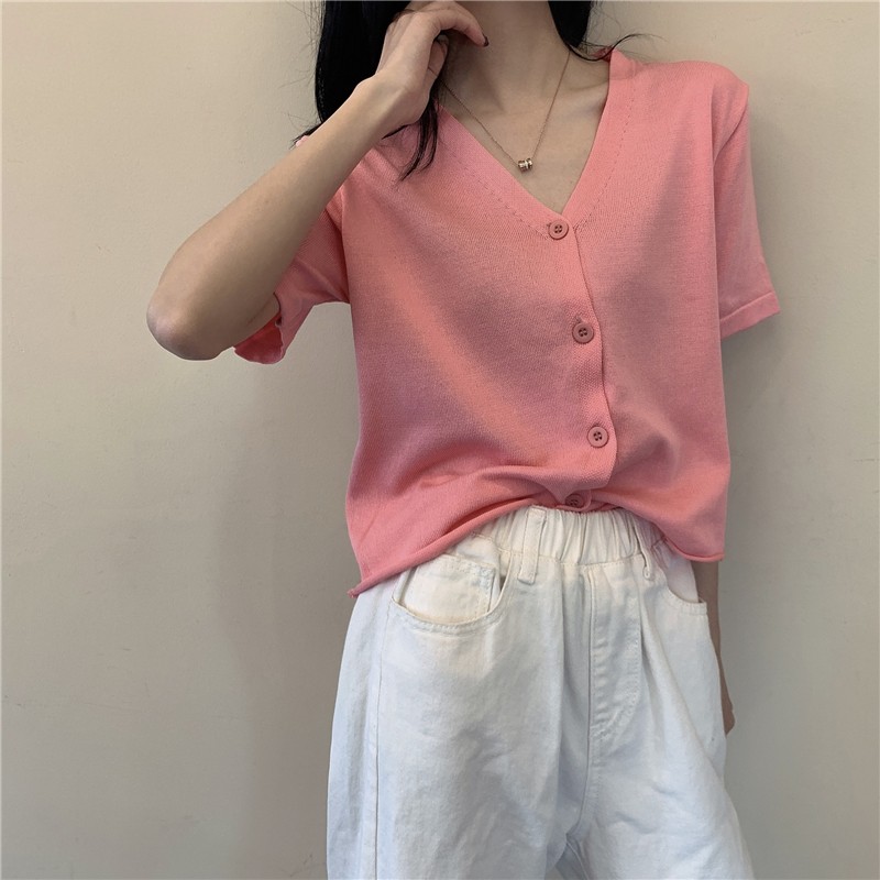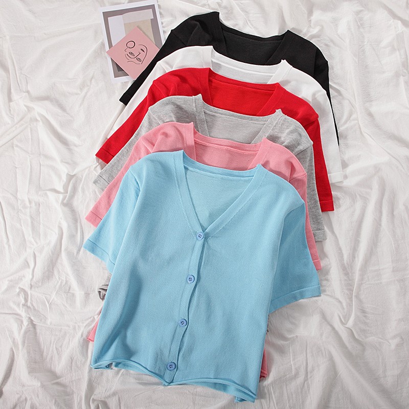 5分鐘前氣質v領薄款打底針織衫,2020夏季新款女裝短款開衫上衣 - 【買一送三】任選4件,僅需NT$1198