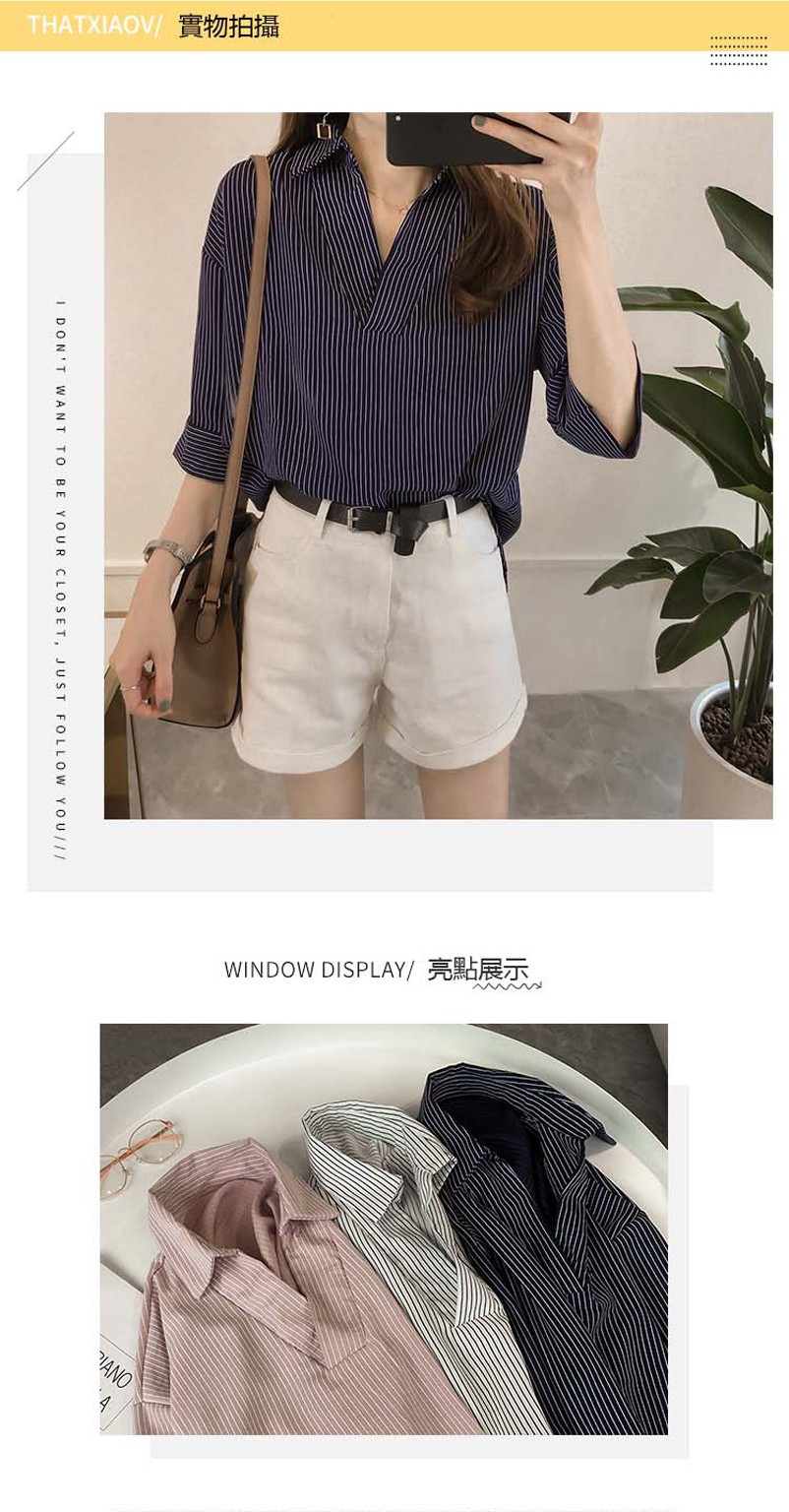 半小時前新品上市,勁爆特殺!全場大放送,單件低至NT$432,2020新款夏裝中長款韓版寬松顯瘦條紋襯衫女七分袖,廠家直銷,超值優惠,買到賺到!過後漲價! - 【買一送二】任選3件 僅需NT$1298,單件低至432