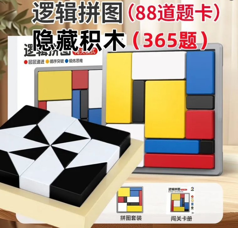 20分鐘前限時搶購 邏輯拼圖,邏輯思維訓練,積木遊戲 ,兒童益智方塊 ,親子互動,智力開發玩具 - 邏輯拼圖+隱藏積木(365關卡+16個積木) 2入组-NT$1280